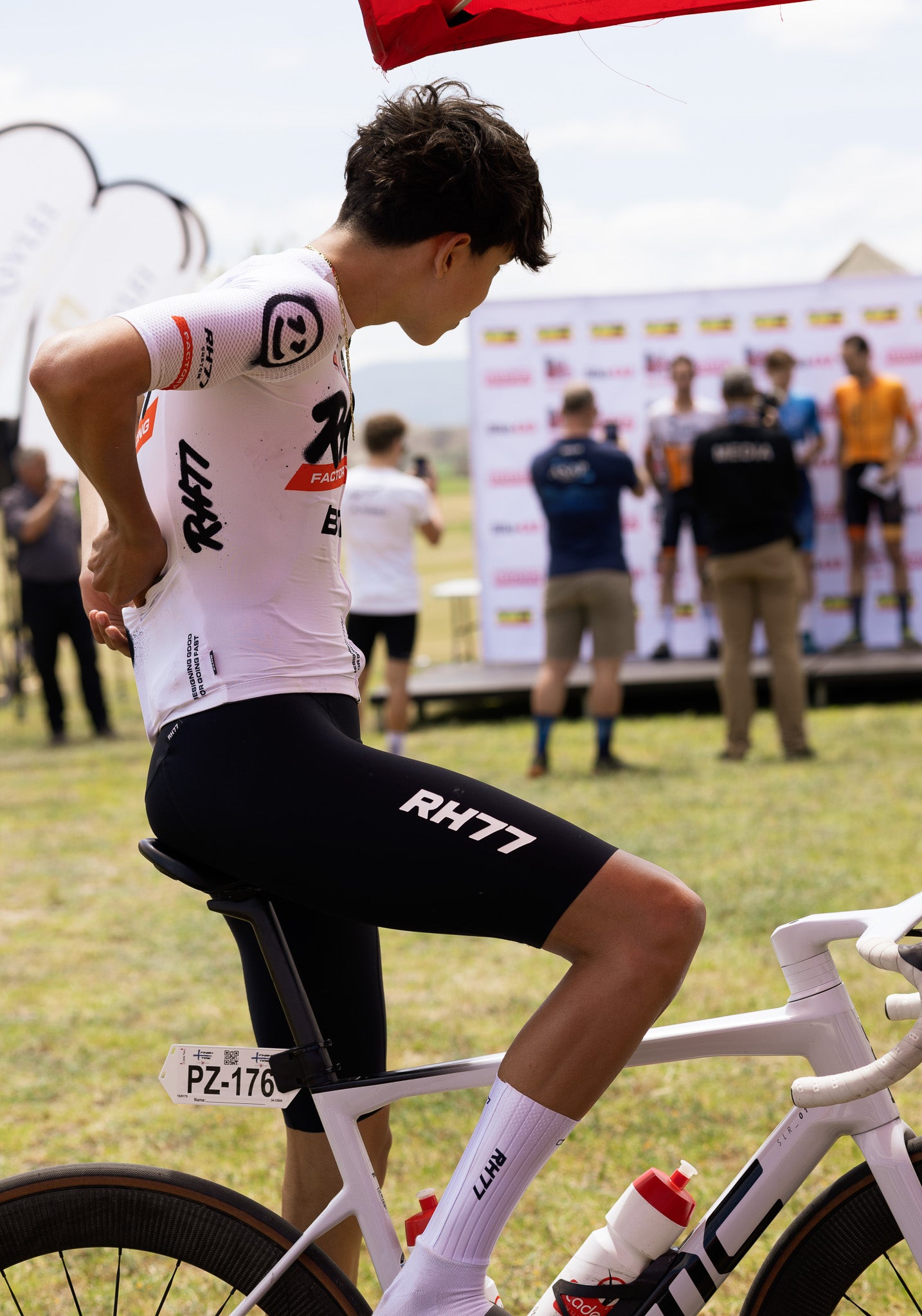 Coded by promising cyclist René Haselbacher Jr., born 2008, the Matrix RH08 represents raw potential and next-generation speed. Inspired by René’s aerodynamic riding style and high-energy flow, this jersey is built for cyclists pushing the edge of performance. With glitch-style lettering and bold colorway, Violet with Red, the Matrix RH08 captures the intensity, unpredictability, and passion of the ride.