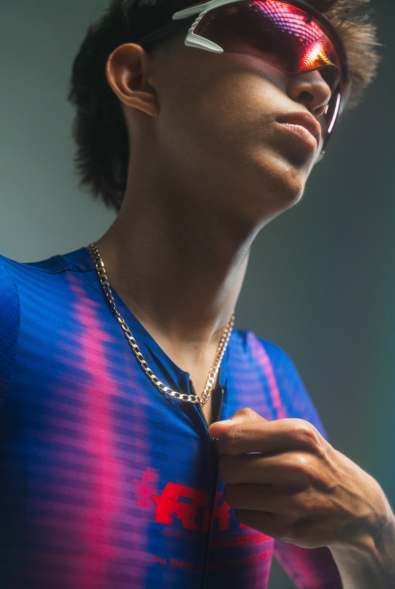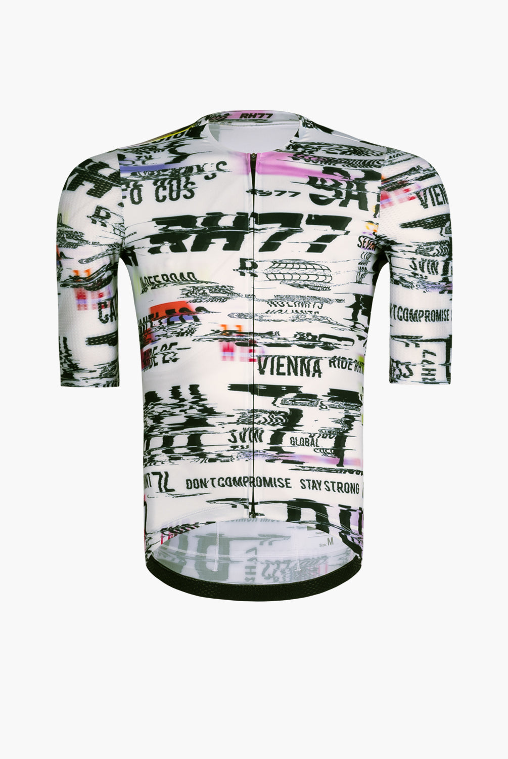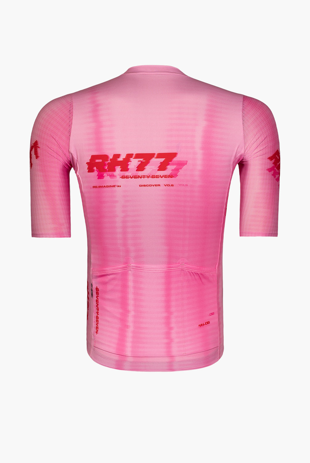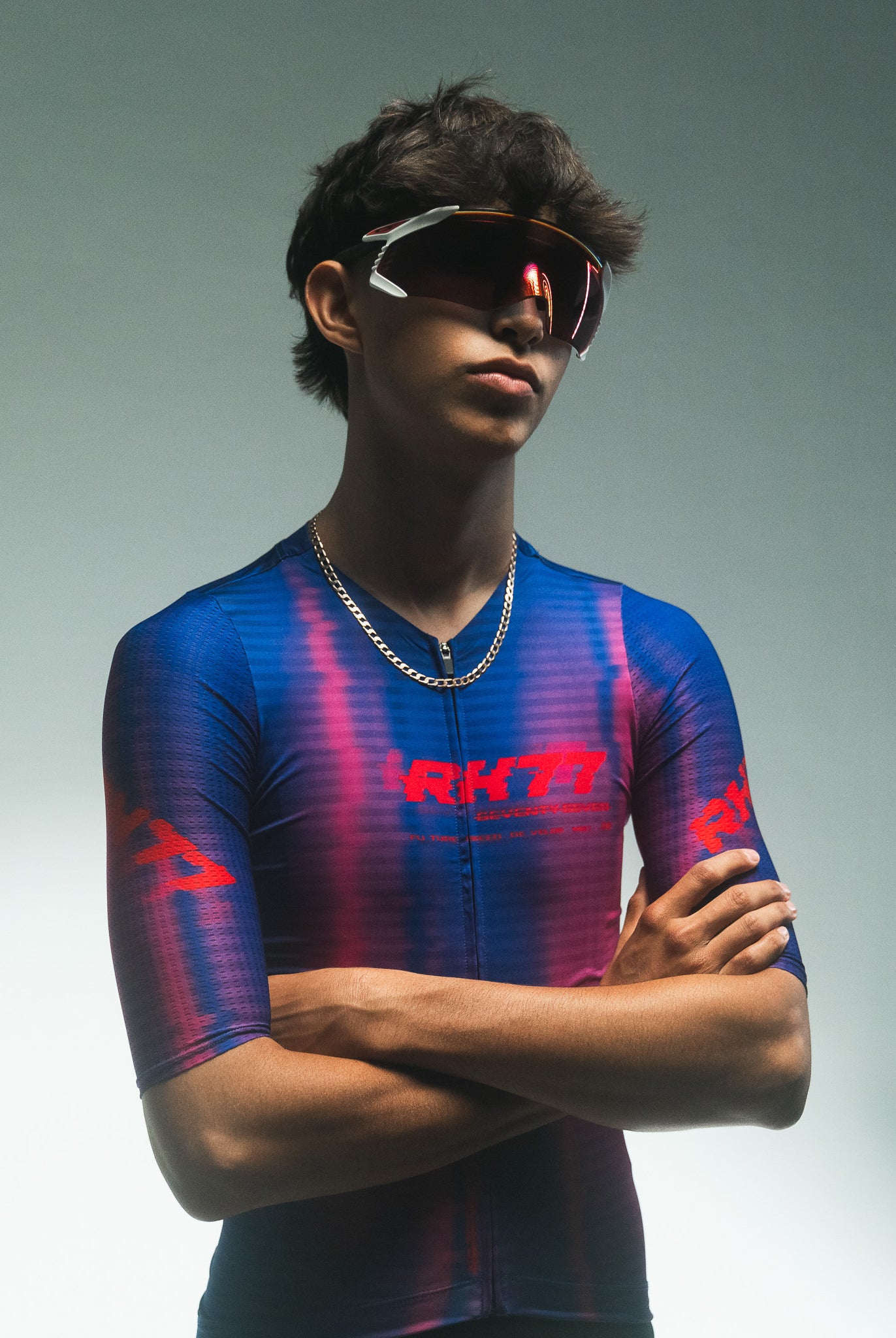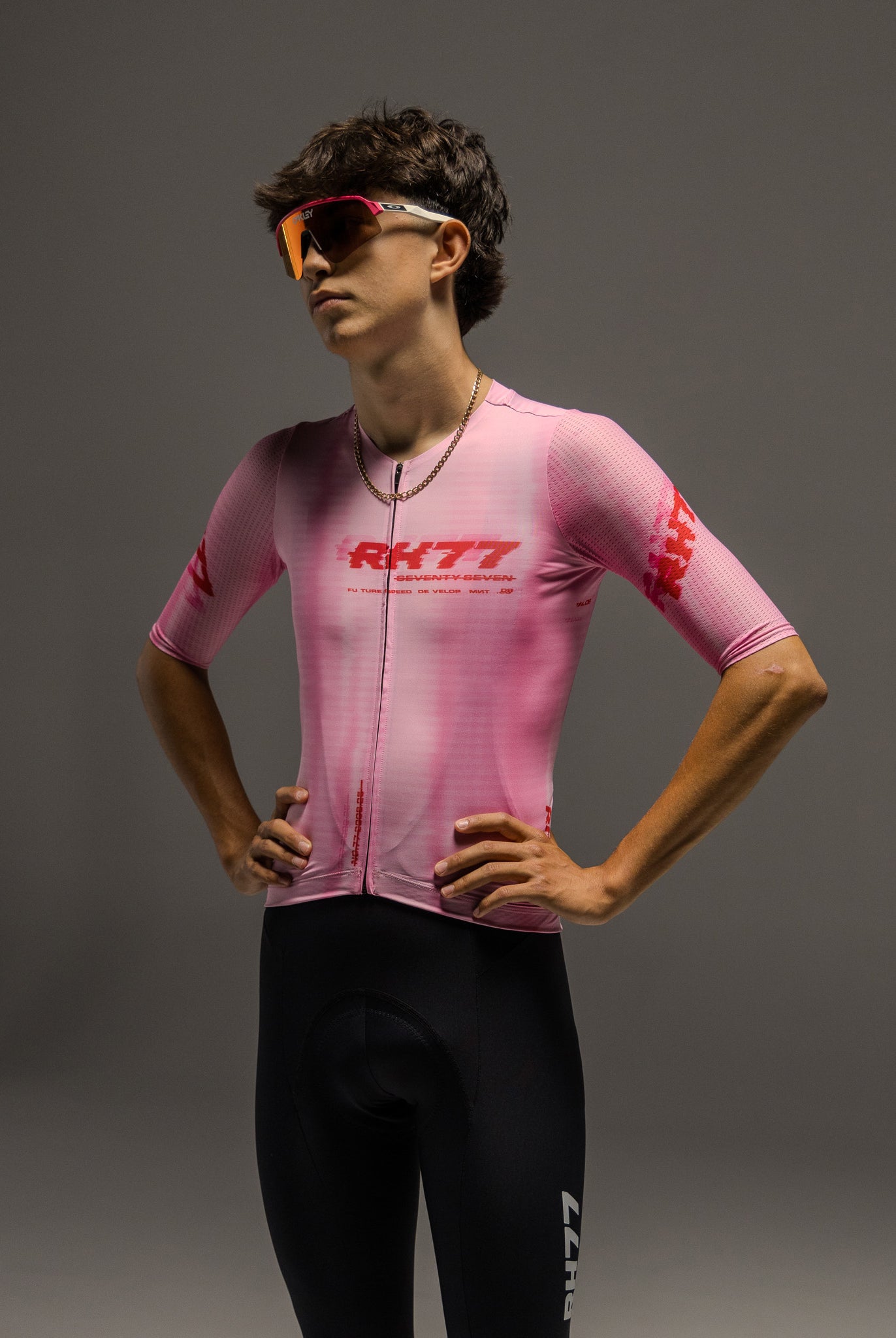 Coded by promising cyclist René Haselbacher Jr., born 2008, the Matrix RH08 represents raw potential and next-generation speed. Inspired by René’s aerodynamic riding style and high-energy flow, this jersey is built for cyclists pushing the edge of performance. With glitch-style lettering and bold colorway, Pink with Red, the Matrix RH08 captures the intensity, unpredictability, and passion of the ride.