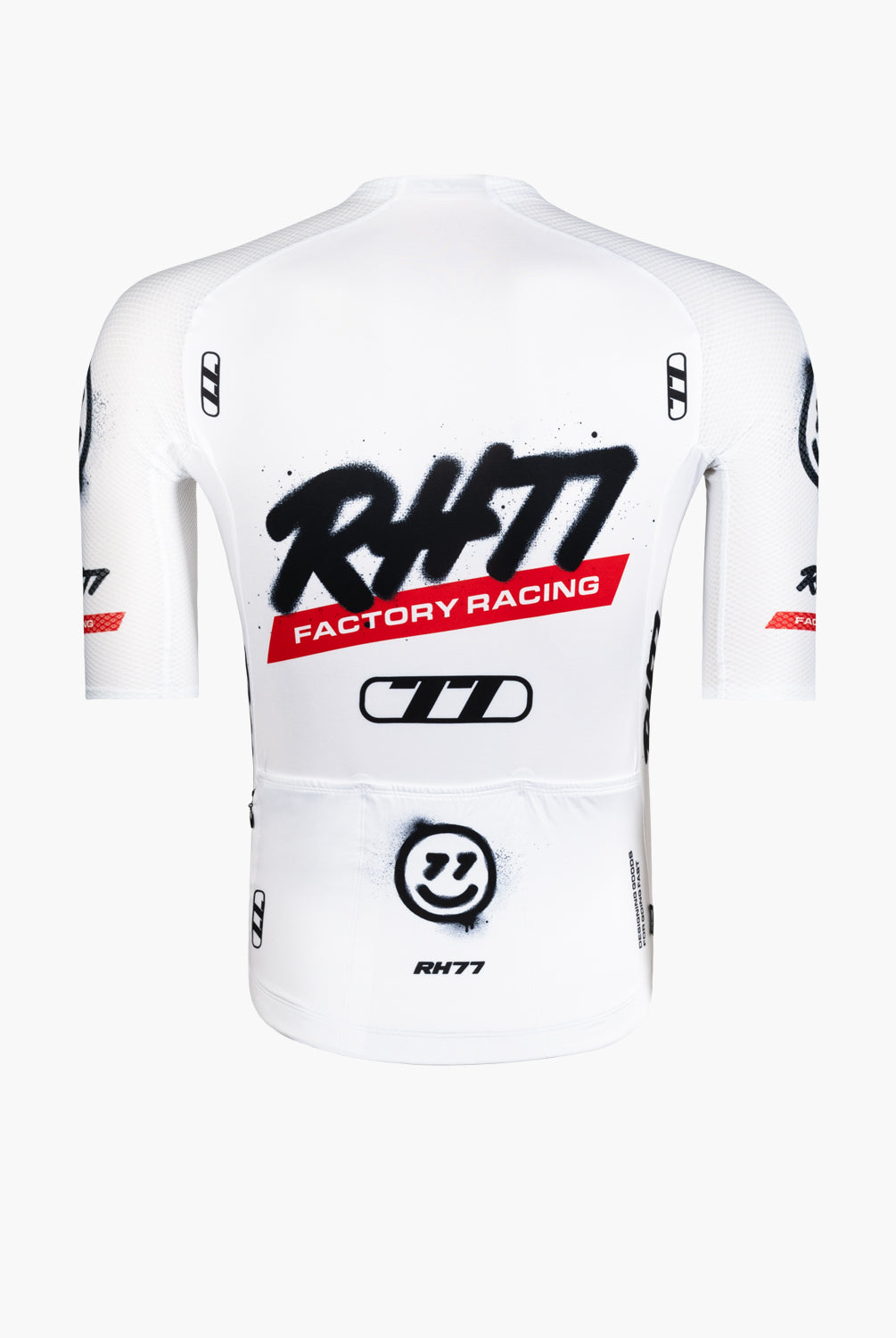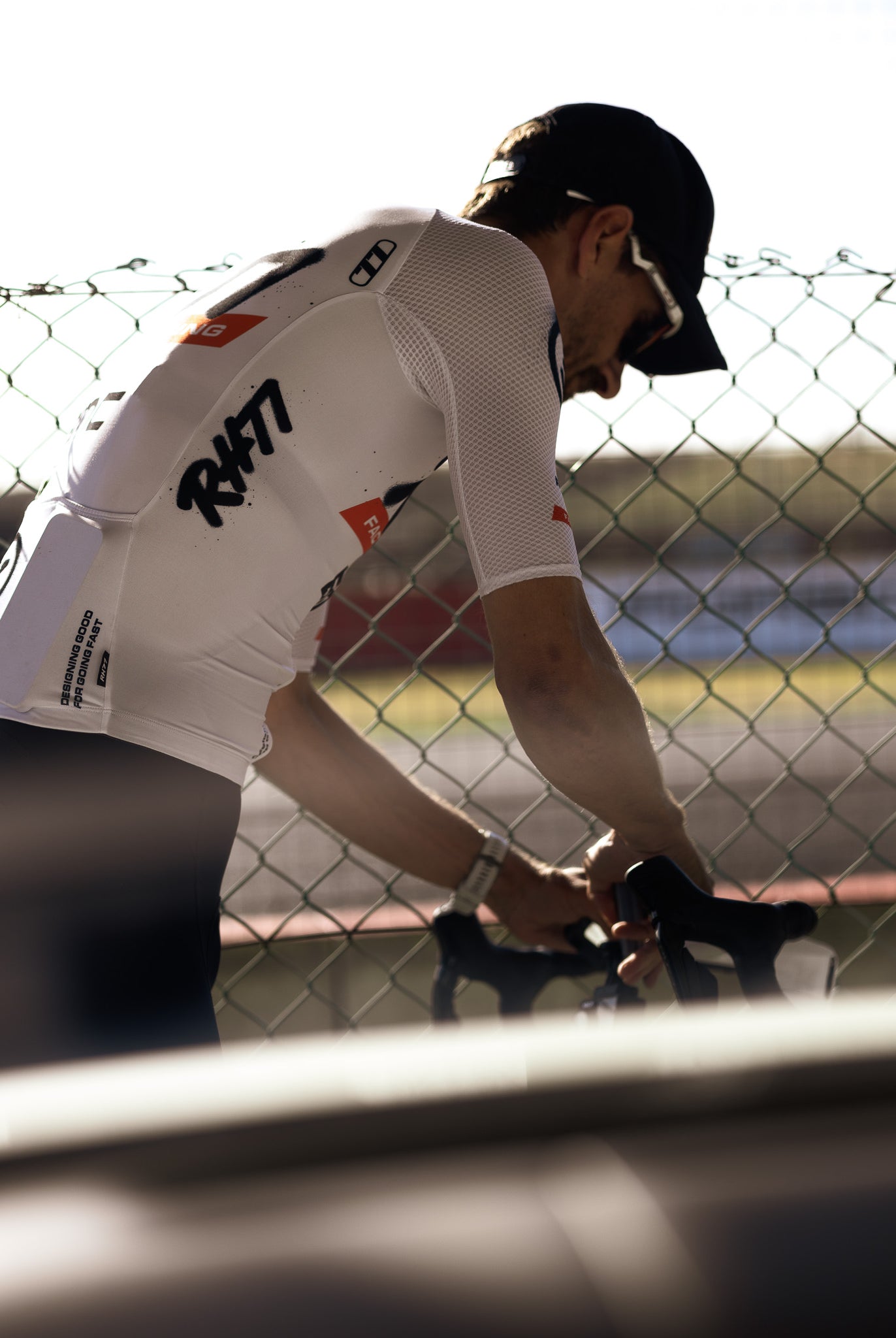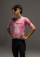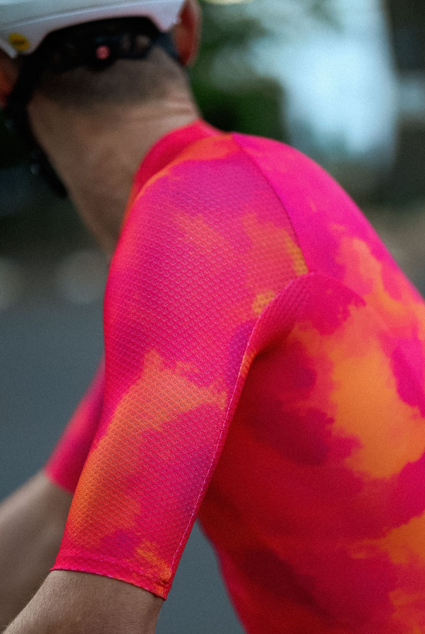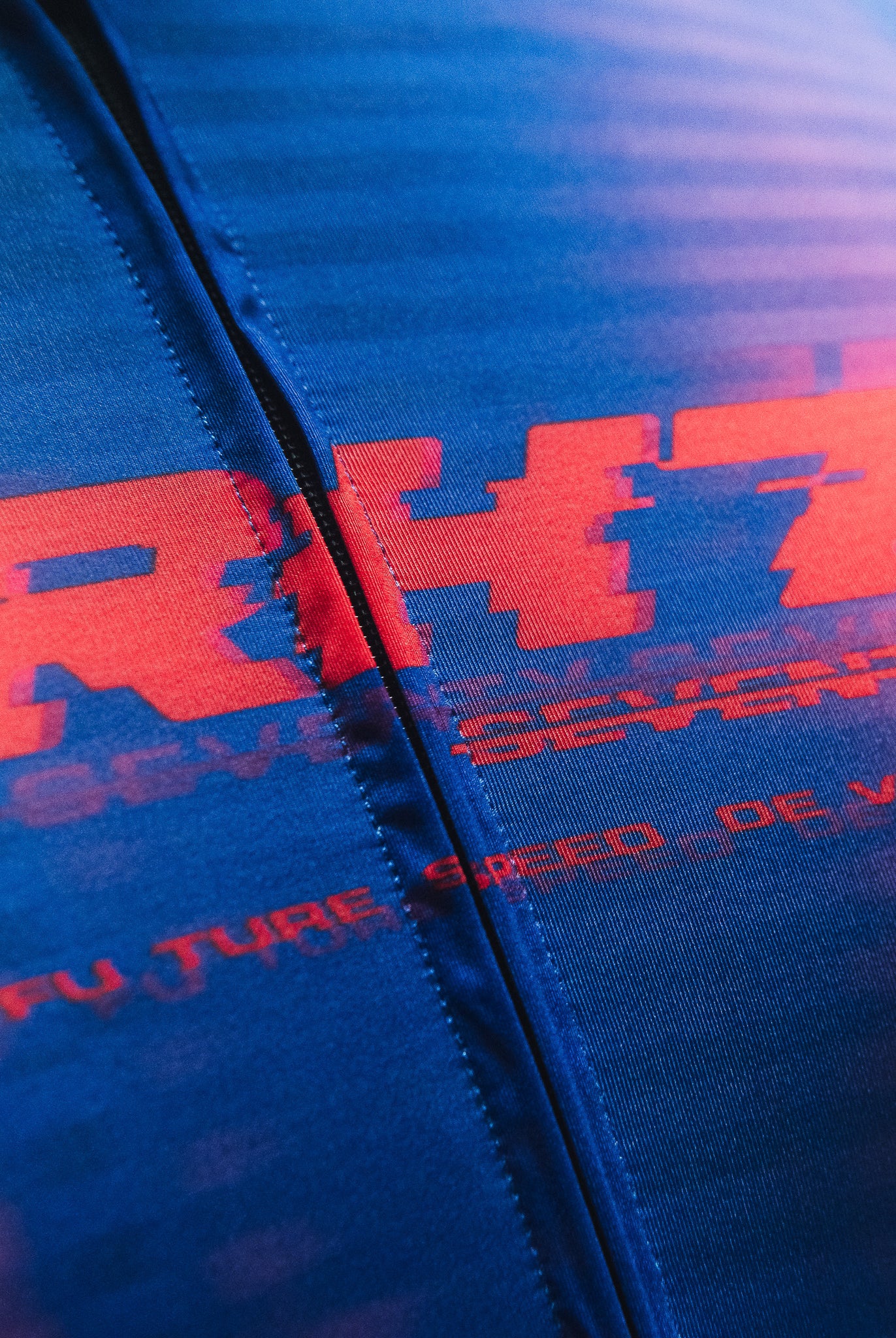 Coded by promising cyclist René Haselbacher Jr., born 2008, the Matrix RH08 represents raw potential and next-generation speed. Inspired by René’s aerodynamic riding style and high-energy flow, this jersey is built for cyclists pushing the edge of performance. With glitch-style lettering and bold colorway, Pink with Red, the Matrix RH08 captures the intensity, unpredictability, and passion of the ride.