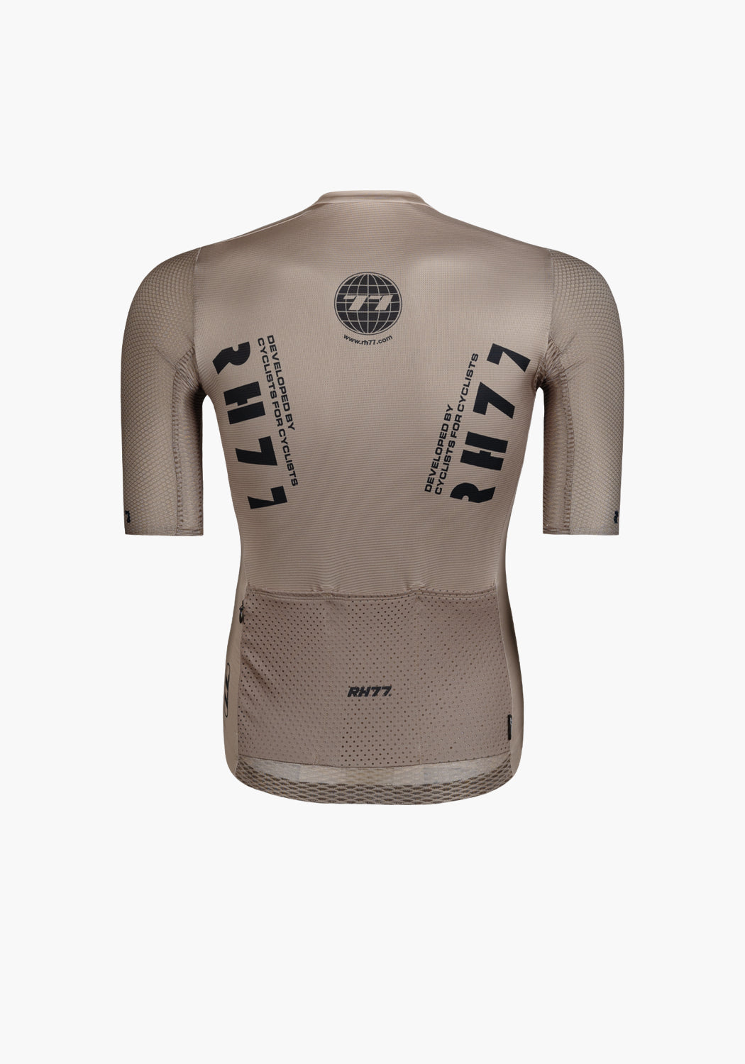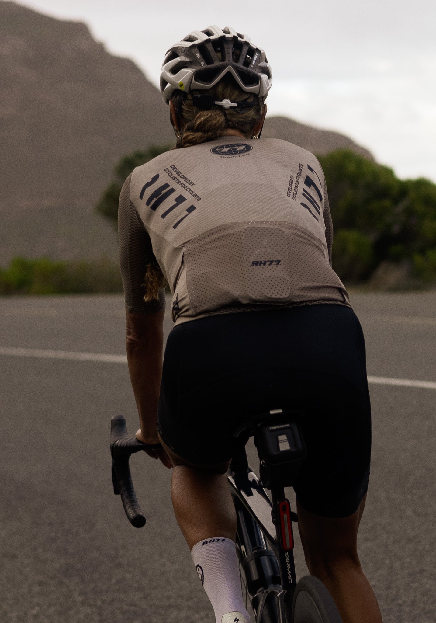 The sleeves are designed in a classic look, while the collar is fashionably narrow and slim-line. The mesh inserts under the arms and the area below the back pockets allows a flow of air which is temperature regulating. Our game-changing Lycra net pockets are specifically designed to securely hold race numbers without damaging the fabric. This innovative feature combines practical functionality with a sleek aesthetic, while the technical fabric enhances breathability, ensuring optimal comfort during every ride.