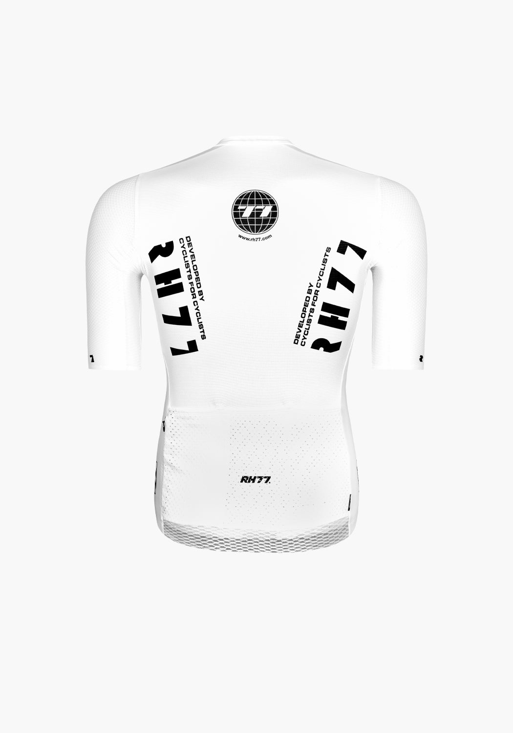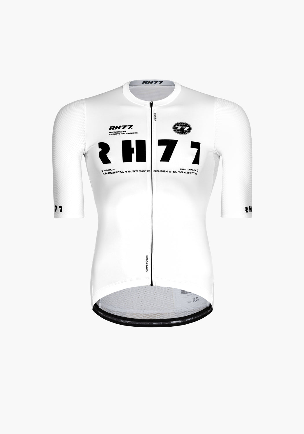 The sleeves are designed in a classic look, while the collar is fashionably narrow and slim-line. The mesh inserts under the arms and the area below the back pockets allows a flow of air which is temperature regulating. Our game-changing Lycra net pockets are specifically designed to securely hold race numbers without damaging the fabric. This innovative feature combines practical functionality with a sleek aesthetic, while the technical fabric enhances breathability, ensuring optimal comfort during every ride.
