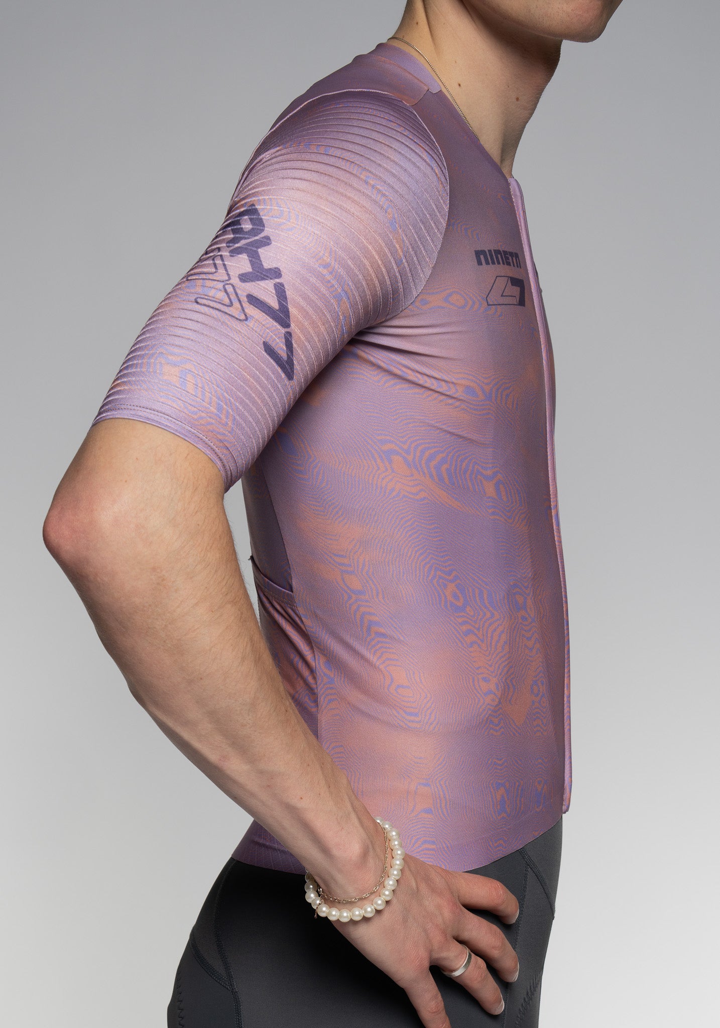The next generation of performance, our latest cycling jersey, engineered for speed, precision, and all day comfort. Crafted from advanced technical fabrics, it delivers an aerodynamic, body forming fit with breathable 3-way stretch for effortless movement on every ride. Performance driven details include a bonded collar for a clean and streamlined finish. The SLR Pro aero sleeves with horizontal textured ribs reduce drag by optimizing airflow over the arms. A bonded hem with integrated silicone grippers keeps the jersey securely in place, maintaining a sleek aerodynamic profile throughout. Three slimline rear pockets and an additional secure zip pocket provide practical storage without compromising fit.