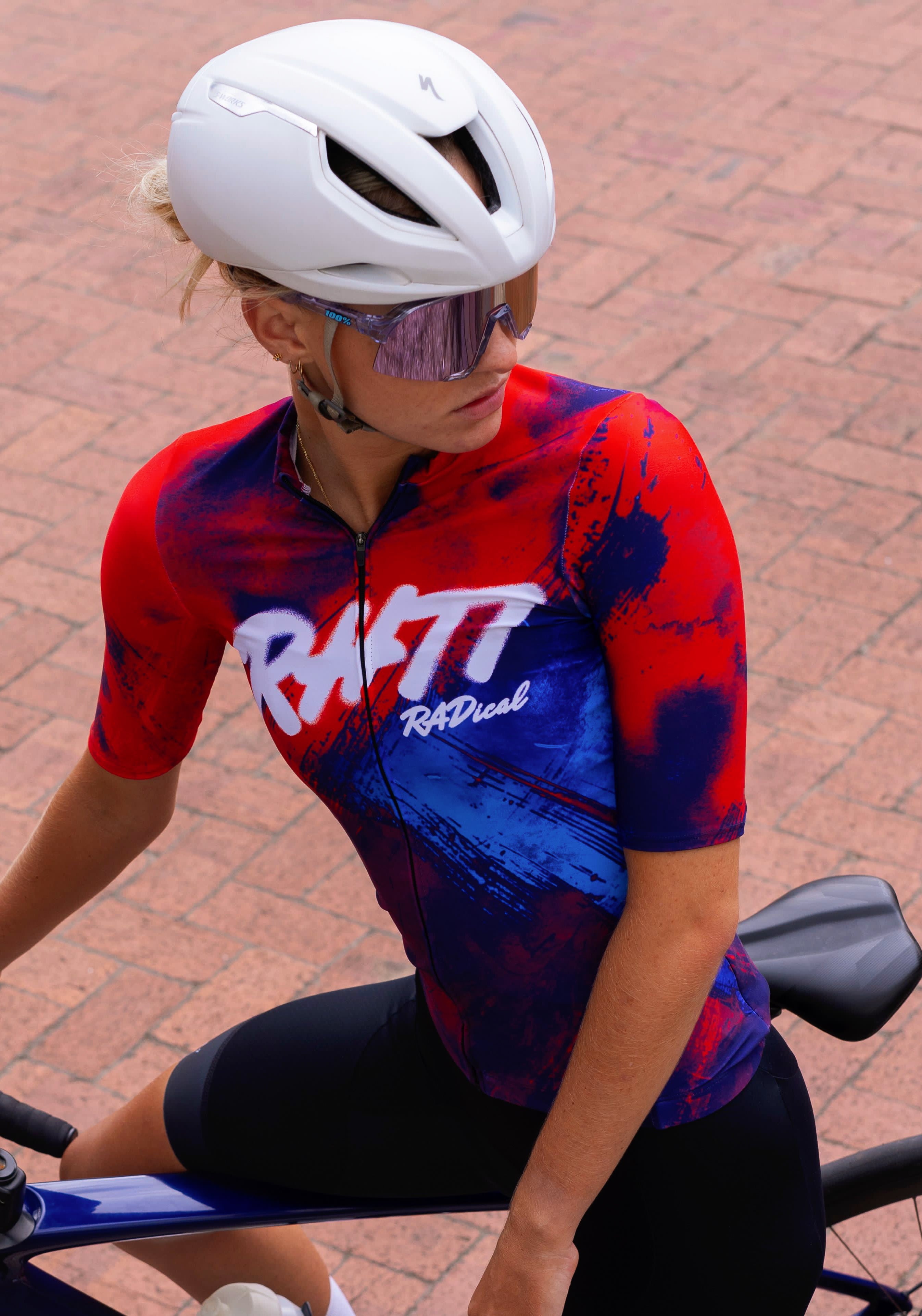 Our RADical R.E.D Jersey and Arm-warmers combo in aero design is made from a light thermal fabric. This jersey offers a unique comfort against the colder temperature, in combination with the matching arm-warmers, it converts the jersey into a long-sleeved version which creates a versitile item for the inbetween colder days. Ideal during the unpredictable weather conditions, no matter what the season. The pull on and pull off arm-warmers can be stowed away in the back pockets, and is easily accessible once needed.