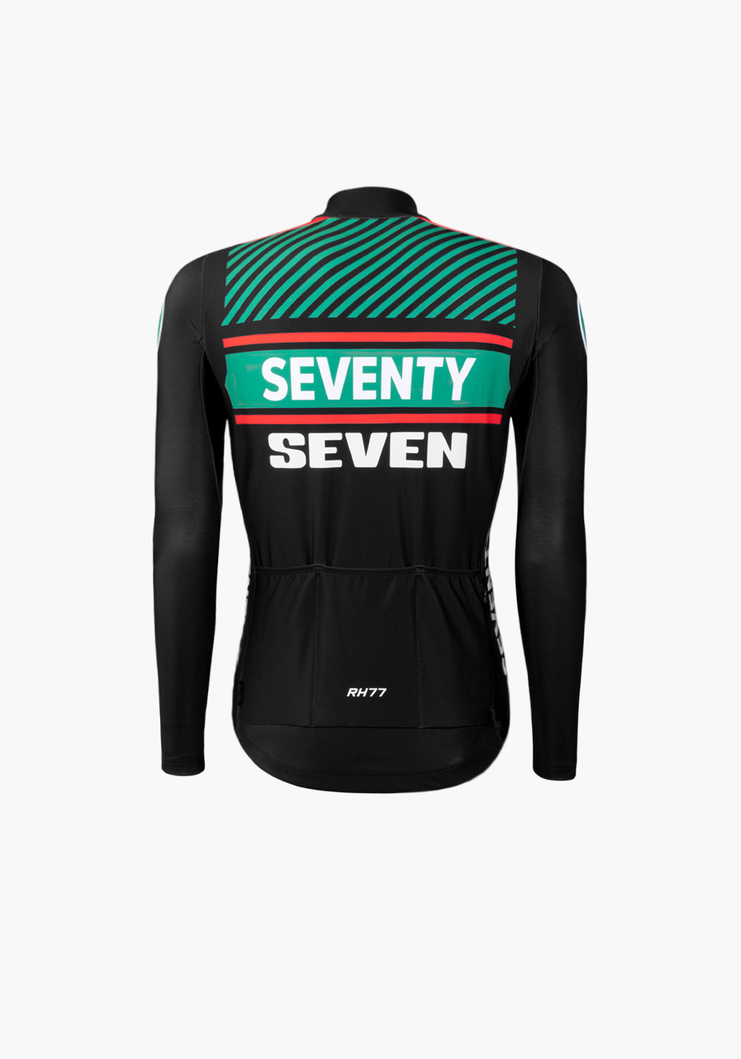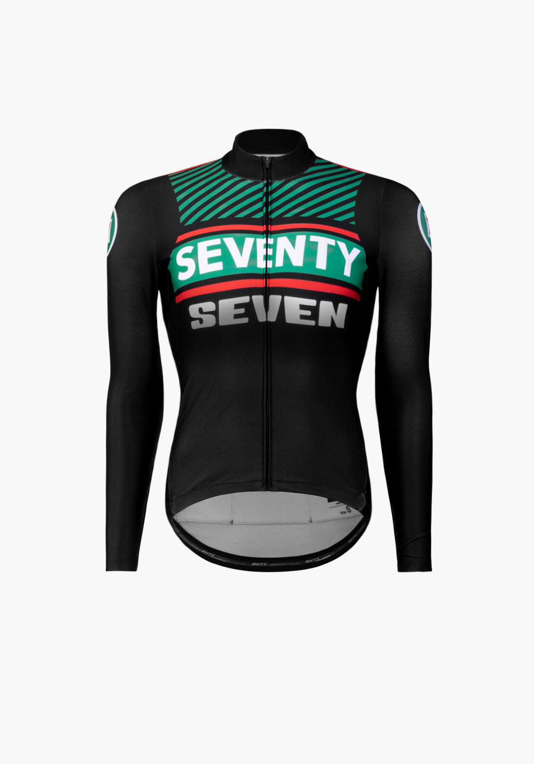 The hold that the 80’s has on todays fashion is impressive. Giving us the idea to revive a U.S pro cycling team jersey known as the Team Seven Eleven. Our version, for the colder season in black background, with keeping the iconic red and green colors.